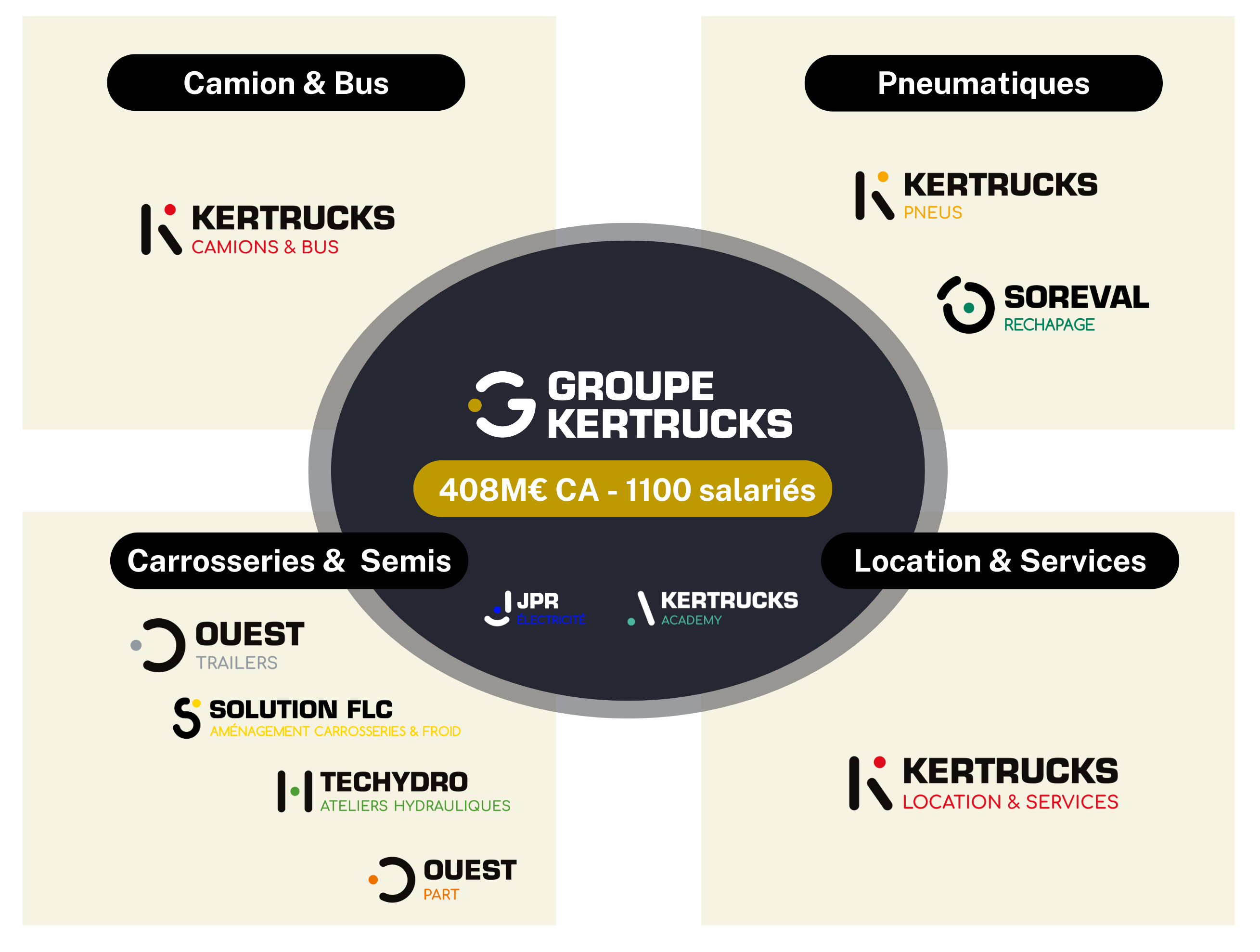 Les activités principales du Groupe KERTRUCKS s’organisent autour de 11 entités juridiques regroupant chacune une ou plusieurs directions opérationnelles :
